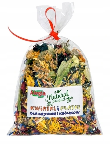 Dodatek ✅ płatków róż oraz ✅ bławatka sprawia że mieszanka bogata jest w składniki mineralne oraz witaminy. Które są niezbędne gryzoniom oraz królikom do prawidłowego rozwoju.