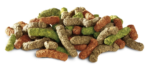 Skład: lucerna siewna, zioła, (pokrzywa, mniszek lekarski, babka lancetowata), kukurydza, suszone jabłka, pszenica, marchew, owoce dzikiej róży, siemię lniane, drożdże browarniane, Spirulina, ekstrakt z papryki, mannooligosacharydy (75 mg/kg), fruktooligosacharydy (50 mg/kg), oset mleczny (50 mg/kg), ekstrakt z juki Schidigera (45mg/kg)