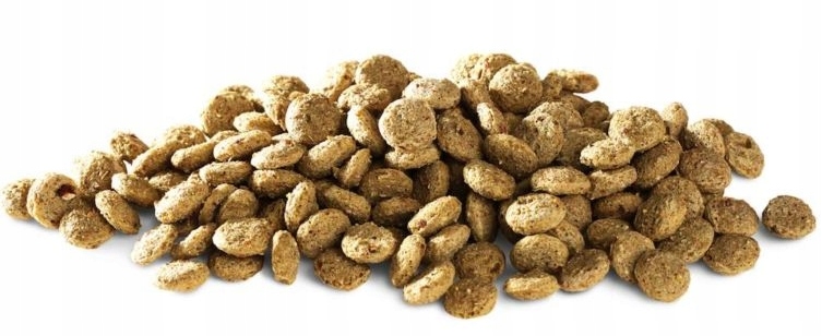 Skład: pszenica, jęczmień, kukurydza, suszona mączka z kurczaka, alfalfa, owies zwyczajny, suszone jabłka, nasiona lnu, marchew, drożdże piwne, mannooligosacharydy (75 mg/kg), fruktooligosacharydy (50 mg/kg), wyciąg z rośliny Yucca schidigera (45 mg/kg), mieszanka dzikich jagód (żurawina, borówka, malina, 40 mg/kg)