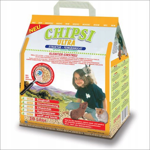 - Ściółka w formie granulatu przeznaczona dla małych zwierząt domowych.
