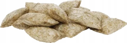 To, co wyróżnia ten produkt, to jego naturalny skład i delikatny jabłkowy aromat, który zwierzęta uwielbiają. Przekąska zawiera melisę i rumianek – zioła znane z działania uspokajającego. Dodatkowo są one źródłem tryptofanu, czyli aminokwasu, który wspomaga produkcję serotoniny, często nazywanej „hormonem szczęścia”.