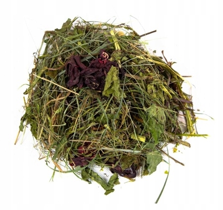 mieszanka traw, mniszek, koniczyna, lucerna, mięta 15%, hibiskus 10%.