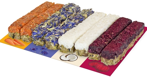 Dzięki naszym bezzbożowym pałeczkom deluxe Twoje gryzonie i króliki miniaturowe mogą spodziewać się wspaniałego wyboru przekąsek w czterech różnych smakach.