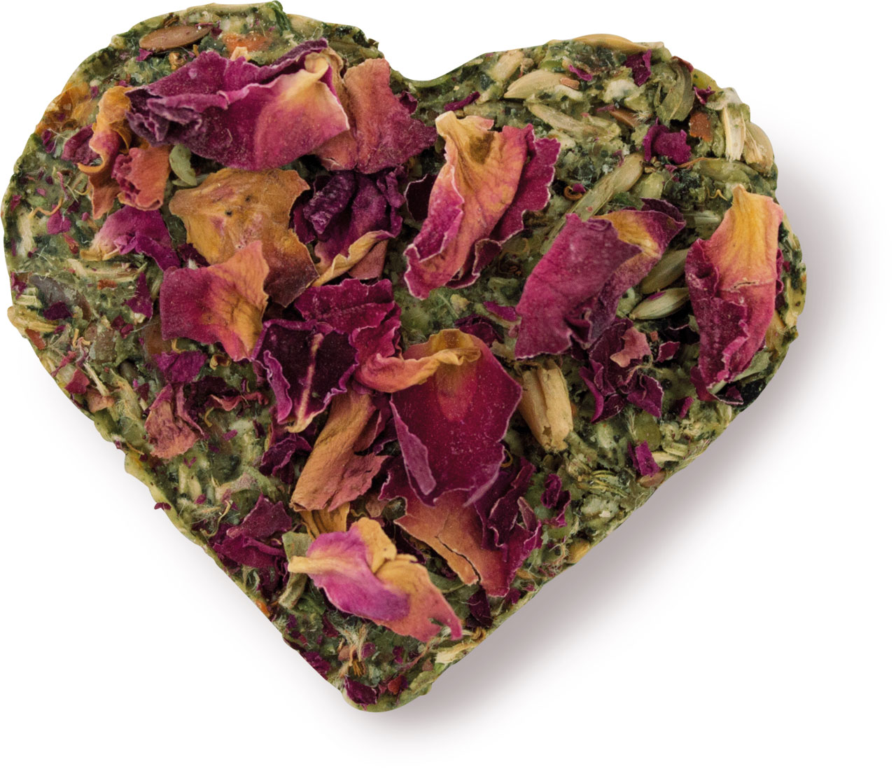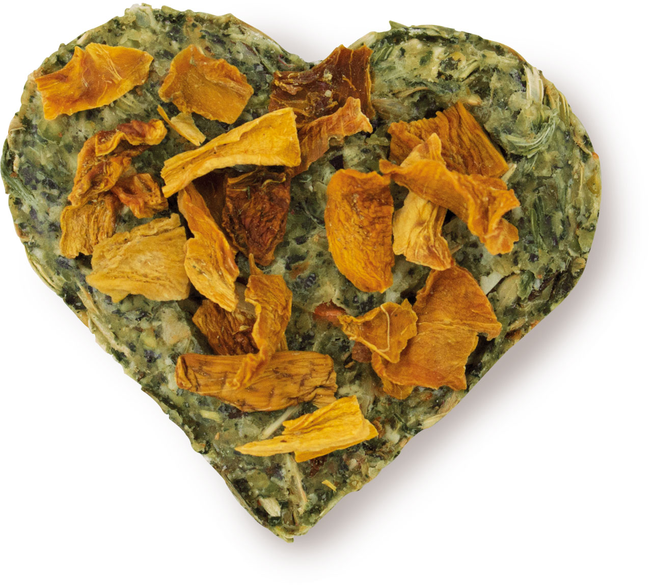 Groch, nasiona traw, nasiona kanarków, marchew 5,3%, pokrzywa, gryka, dynia 3,2%, pasternak 3,2%, natka pietruszki, nasiona konopi, siemię lniane, nasiona kopru włoskiego, mięta pieprzowa, mniszek lekarski, kminek czarny, płatki róży 0,4%;