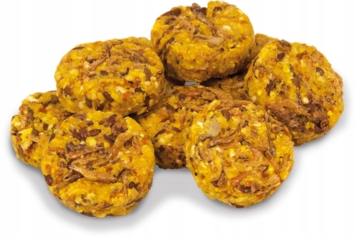 Kukurydza, pszenica, marchew 12,2%, siemię lniane 10,4%, proso La Plata, orzeszki ziemne, proso manna, nasiona słonecznika paskowane, olej rzepakowy, krewetki 2%, skrobia roślinna