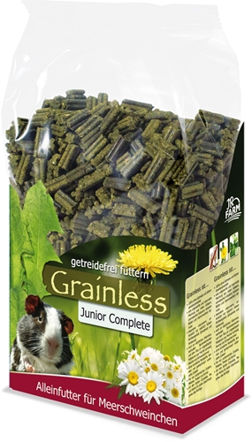 Dzięki specjalnemu kształtowi Grainless Junior wspomaga pobieranie pokarmu w ważnych pierwszych miesiącach życia i dostarcza wszystkich ważnych składników odżywczych w proporcji witamin i minerałów dostosowanej specjalnie dla rosnących zwierząt.