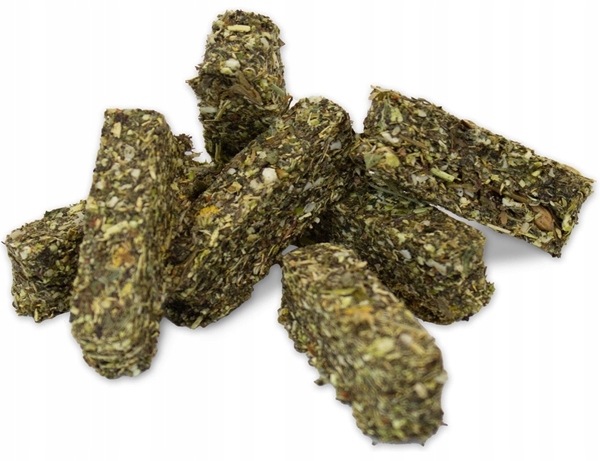Nagietek i wiesiołek wspierają regenerację skóry, a pokrzywa i skrzyp polny, bogate w krzemionkę, dodatkowo wzmacniają strukturę sierści. Intensywne gryzienie pałeczek nie tylko sprawia przyjemność, ale także wspomaga naturalne ścieranie stale rosnących zębów.
