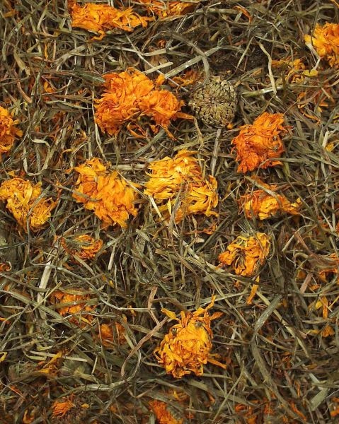 Obecny w sianku suszony nagietek ma właściwości przeciwzapalne i przeciwbakteryjne. Wzmacnia naturalną odporność zwierzęcia.