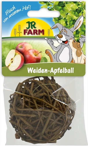 Piłka wykonana w całości z gałązek wierzbowych, wewnątrz znajduje się jabłko.