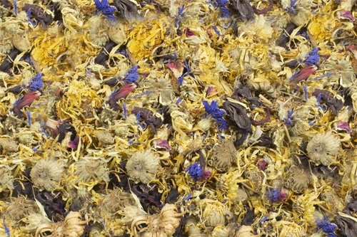 Kwiat nagietka 36,5%, kwiat hibiskusa, kwiat rumianku 16%, kwiat róży 5%, kwiat bławatka 5%, szyszki chmielu 1,5%.