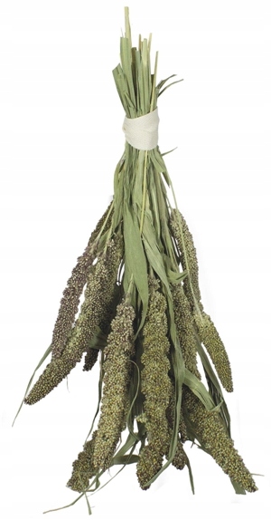 Suszone i smaczne kłosy zielonego prosa senegalskiego są miłą odmianą na wybiegu czy w klatce dla Twojego pupila i mogą być zawieszone w dowolnym miejscu.