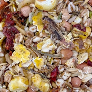 Mieszanka zawiera 64% nasion mącznych, 11% nasion i orzechów oleistych, 10% warzyw i owoców, 7% roślin strączkowych, 5% białka zwierzęcego i 3% ziół.