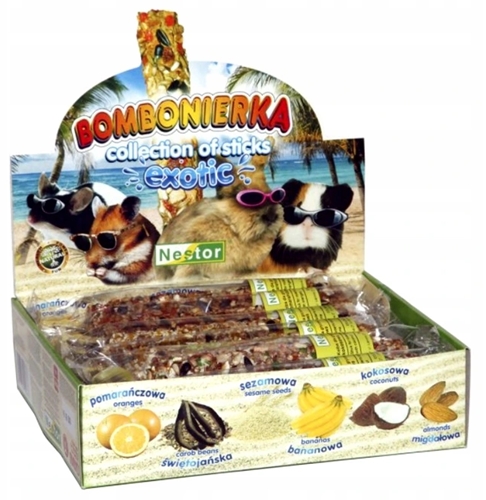 Bombonierka dla gryzoni i królików to zestaw 12 kolb w 6 smakach: