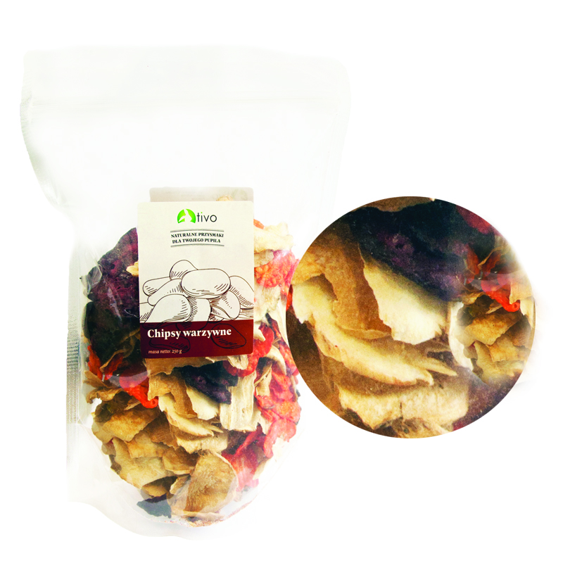 TIVO Chipsy Warzywne to zdrowa, uzupełniająca karma dla królików, szynszyli, świnek morskich, koszatniczek, chomików, myszek, szczurów i myszoskoczków. Naturalne chipsy warzywne z pasternakiem, marchewką, pietruszką i burakiem dostarczają wielu witamin oraz cennych składników odżywczych.