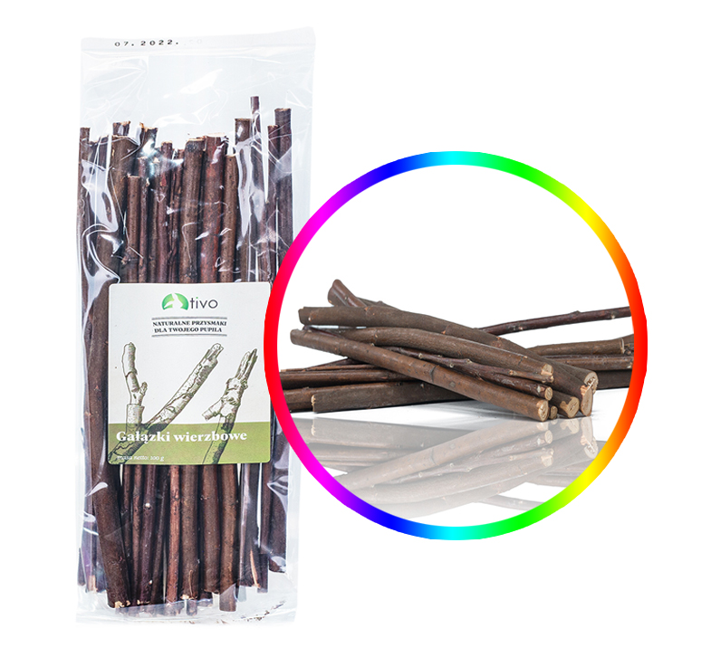 Gałązki pomagają w utrzymaniu zdrowych siekaczy u gryzoni i królików a ich kora bogata jest w mikroelementy.