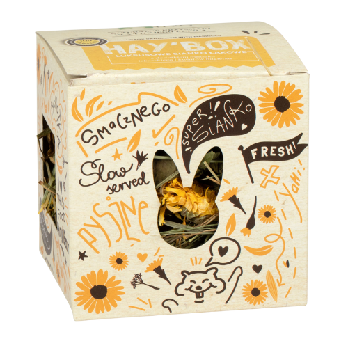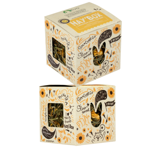 Hay'Box Mniszek lekarski i Nagietek – Smaczna i zdrowa zabawka dla gryzoni i królików