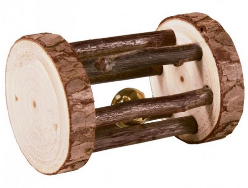 Drewniana rolka z dzwonkiem to świetna zabawka dla każdego gryzonia i królika.