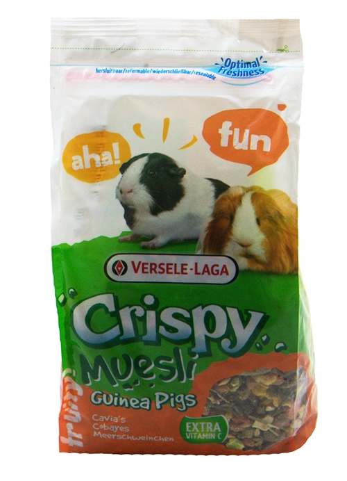 Smaczne, bogate w błonnik płatki Crispy Muesli dla świnek morskich to kompletna karma zawierająca pyszne siano oraz mieszankę różnych warzyw.