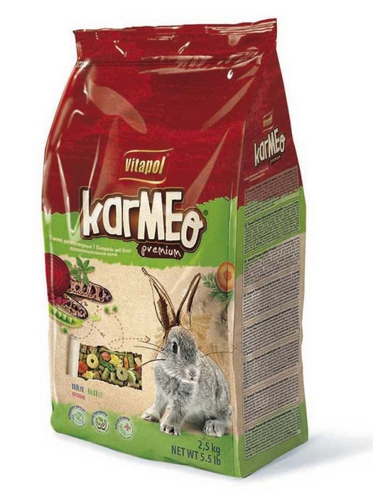 Skład: otręby pszenne, mąka z ziarna pszenicy, śruta pszenna, śruta kukurydziana, mączka z lucerny, śruta poekstrakcyjna rzepakowa, mąka kukurydziana, siano granulowane, pszenica, płatki grochowe (5%), włókno grochowe, śruta słonecznikowa, jęczmień, marchew suszona (2%), chleb świętojański suszony (2%), płatki kukurydzy, siemię lniane (2%), burak suszony (1,5%), płatki pszenne, tymianek (1%), łodyga kopru suszona (0,5%), mączka z marchwi, białko ziemniaczane, suszone rośliny pszenicy, śruta lniana, węglan wapnia, fosforan jednowapniowy.
