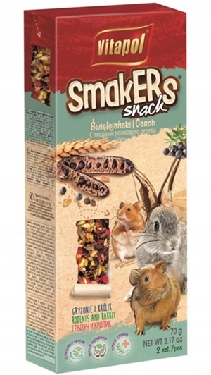 Dzięki odpowiedniej twardości oprócz wartości odżywczych Smakersy Vitapol dbają również o regularne ścieranie siekaczy u gryzoni i królików