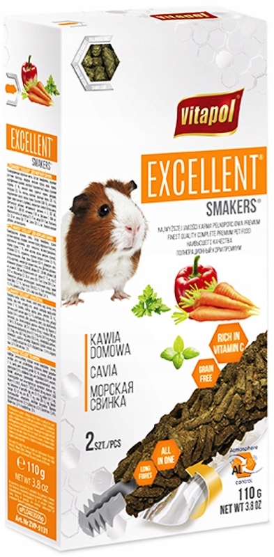Smakesry Excellnt dla gryzoni roślinożernych oraz królika to pierwsze Smakersy bezzbożowe w ofercie marki Vitapol .