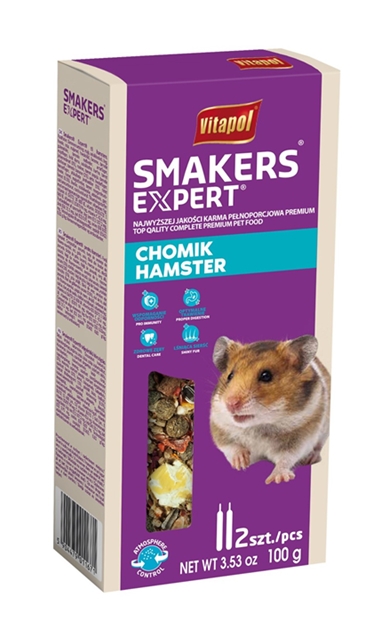 Smakers® Expert® w żywieniu chomików to karma pełnoporcjowa, w której przeważają składniki poddane procesowi ekstruzji. Dzięki temu wartościowe składniki żywieniowe są bardziej dostępne i lepiej przyswajalne przez organizm, wspierając codzienną kondycję oraz witalność chomika.