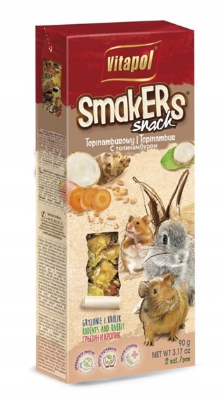 Dzięki odpowiedniej twardości oprócz wartości odżywczych Smakersy Vitapol dbają również o regularne ścieranie siekaczy u gryzoni i królików