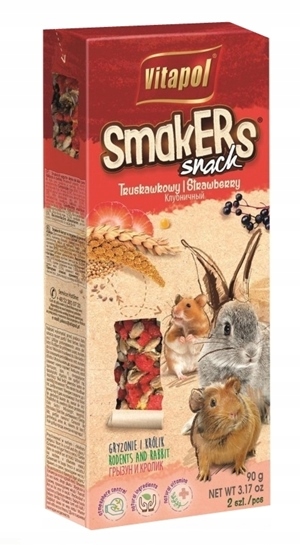 Dzięki odpowiedniej twardości oprócz wartości odżywczych Smakersy Vitapol dbają również o regularne ścieranie siekaczy u gryzoni i królików