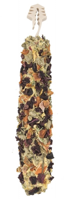 mączka z lucerny 40%, mąka grochowa, burak suszony 15%, marchew suszona 15%, łodyga pietruszki suszona 2,5%, liść mniszka suszony 2,5%.