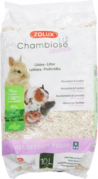 ZOLUX Chambiose Nature to w 100% naturalna podściółka wykonana z włókien konopnych, która jest wyjątkowo chłonna, ekologiczna i biodegradowalna. Dzięki swojej miękkiej strukturze zapewnia komfort zwierzętom i jest doskonałym rozwiązaniem dla alergików, gdyż rzadko powoduje uczulenia.